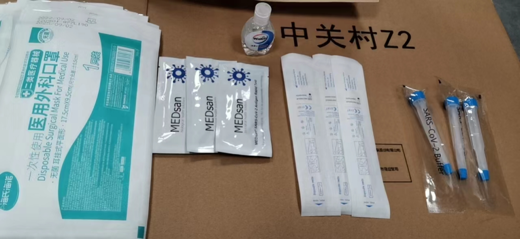 这批物资系快手捐赠,其中包含有抗原、医用口罩、酒精湿巾、免洗洁手液等。