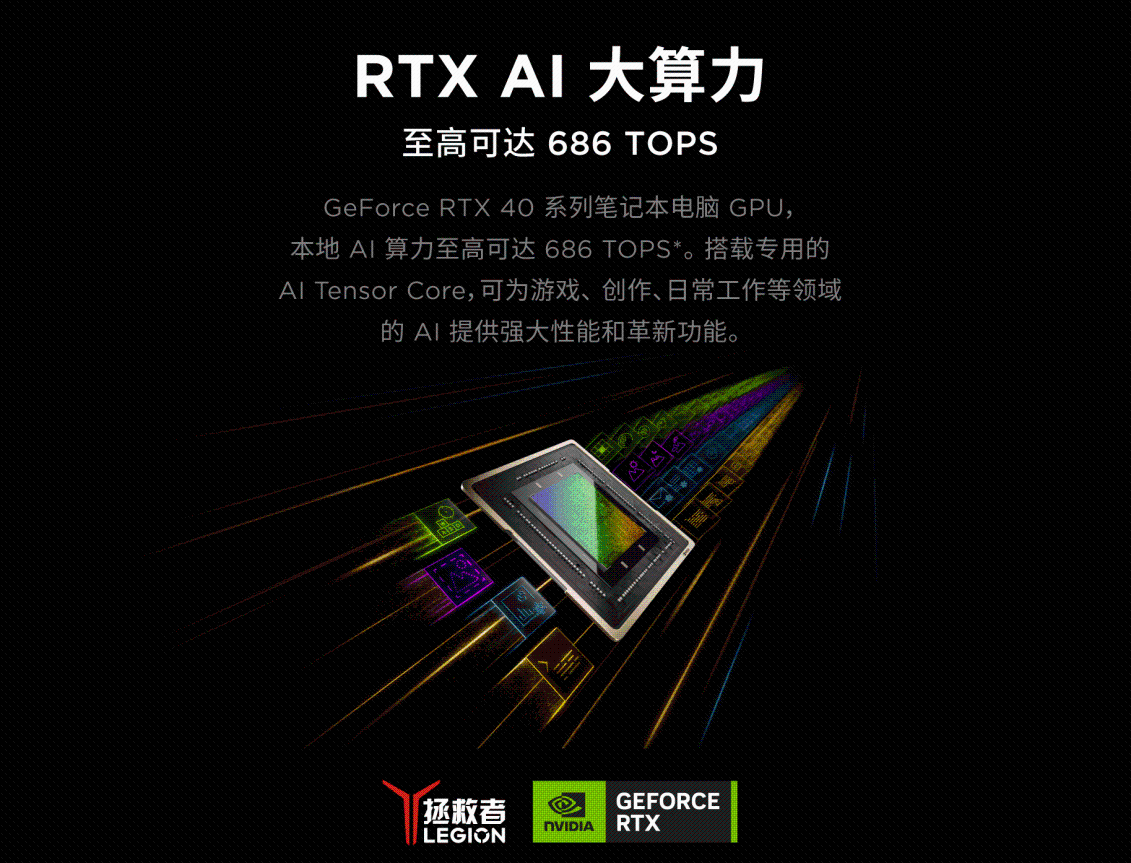 拯救者Y7000P系列带来了多个配置版本可供选择,就拿人气最高的NVIDIA GeForce RTX 4070 笔记本电脑GPU来说,采用全新Ada Lovelace架构,8GB GDDR6大显存, 140W满功耗释放,AI算力可高达233 TOPS。
