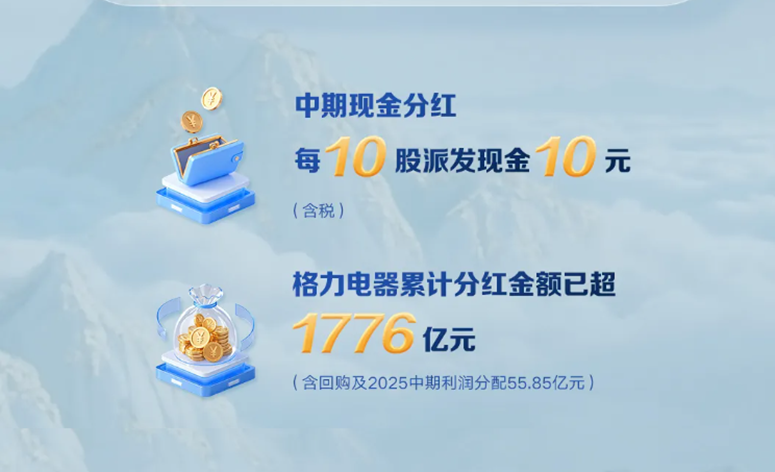 值得关注的是,格力电器始终重视股东回报,近期发布了2025年中期利润分配预案,拟每10股派发现金红利10元,共计派发现金红利55.85亿元。自上市以来,格力电器累计分红金额已超过1776亿元,体现了公司对股东回报的高度重视。