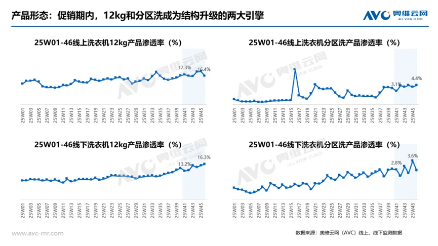 洗护品类中,多筒分区洗洗衣机展现出明显优势。钉科技注意到,双十一期间,12kg大容量与分区洗功能渗透率显著提升,以统帅、美的、小米为代表的"三区洗"一体化产品竞争尤为激烈。值得注意的是,中高端价格带(4000-6000元)的渗透率持续攀升,反映出消费者愿意为功能细分和效率提升支付溢价。这种结构性增长不仅体现在产品层面,更倒逼产业链在智能制造、场景化服务等领域加速布局。