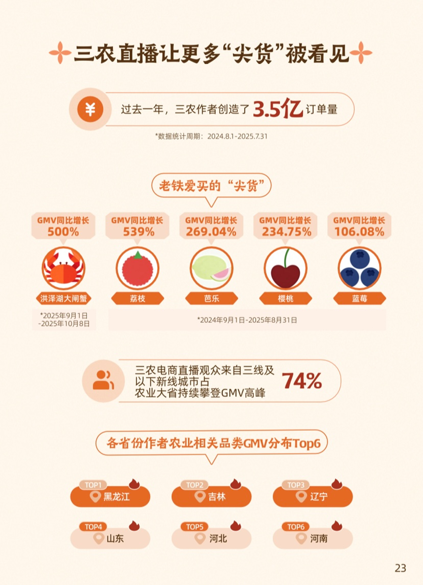此外,内容节奏与商业周期在快手三农社区也形成紧密关系。春耕季和丰收季不仅是农业生产的高光时刻,也为平台带来了内容创作的高活跃度,并直接催生了GMV的季度性峰值,显示出“好内容”与“好生意”的紧密联动。