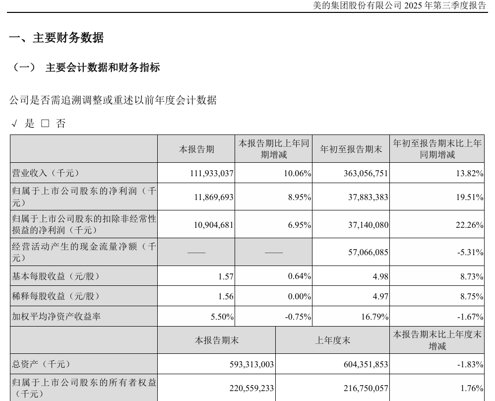 来源:美的集团三季度报告