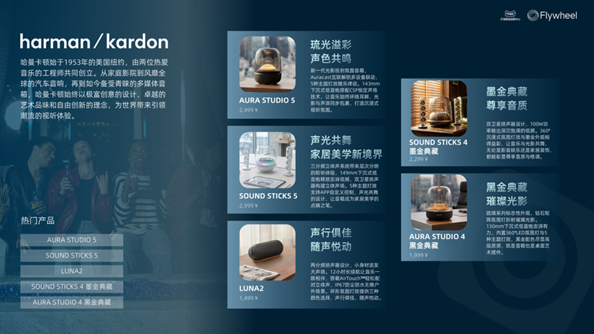 另一类是家居装饰音箱,则更强调外在视觉美感与生活场景的融合,通过声画一体、软装美学设计、文创礼赠设计及IP联名互动,将音箱转化为可陈列、可搭配、可分享的家居艺术品。