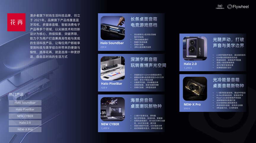 花再作为漫步者旗下聚焦年轻科技美学的子品牌,凭借尖端技术与创新设计,将电竞音箱升级为兼具性能与视觉张力的生活方式载体。Halo Soundbar以精巧声学架构与氛围灯设计,为玩家打造沉浸感拉满的游戏战场;Halo PixelBar借动态歌词与赛博风设计,让音乐播放本身成为视觉秀场;NEW CYBER以潮玩互动形态,将音箱变成可把玩的个性符号;Halo 2.0采用2.0声道扬声器组合与快充技术,实现真实临场听感与高效能源管理的平衡;NEW-X Pro则通过多场景音乐系统,实现从电竞到日常的无缝切换。花再将尖端科技与潮流外观深度整合,让音箱成为桌面美学的一部分,赢得追求自由、舒适与时尚生活方式的年轻用户青睐。