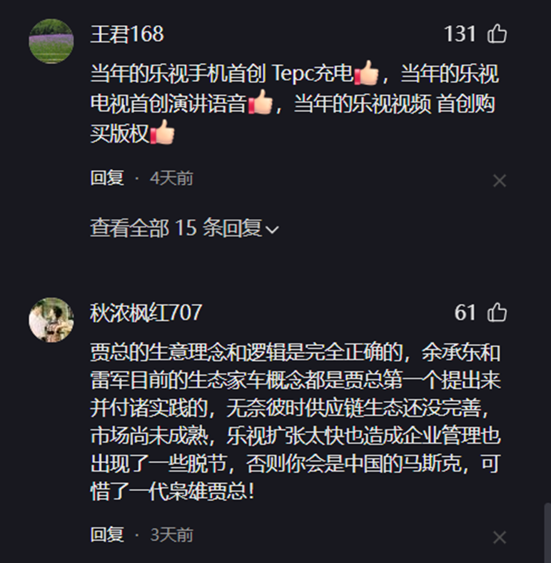 贾跃亭个人形象在评论区的扭转,还在于他这些年超前理念与落地能力之间的断裂,宏大叙事与现实困境之间的落差被更多人看到。“他的生意理念和逻辑是完全正确的,余承东和雷军目前的生态家车概念都是贾总第一个提出来并付诸实践的。”一位科技行业观察者分析道,“可惜他生不逢时,供应链生态还没完善,市场尚未成熟。”