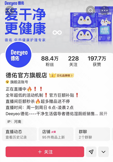 快手电商商品卡川流计划推出至今,已助力众多品牌商家在商城收获精准曝光和高效转化,充分抓住平台货架场生意增长机遇。主打湿厕纸、婴儿湿巾、柔纸巾等高品质一次性卫生用品的品牌商家德佑正是其中的代表之一。