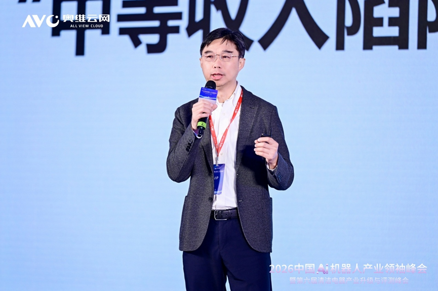 奥维云网(AVC)总裁郭梅德分享了《2026年中国家庭服务机器人行业发展趋势》报告。他认为,AI作为基础设施正全面赋能电器产业,推动产品从功能集成向模块化、拟人化具身智能进化。他提出清洁、适老照护、儿童教育三大确定性的刚需场景,以及家庭管家、炒菜机器人、宠物陪伴等新兴场景,伴随着需求的确定,在净·娱·护·防·伴,五大场景,分别朝着智能化、专业化、精细化、一体化、人格化方向升级。在谈到商业落地时,郭梅德指出清洁机器人产业中国企业已成功树立典范,接下来中国企业要从“立足本土”向“领先全球”转型,与此同时做好物理安全与隐私保护,在家庭服务机器人逐渐普及过程中,寻求与之配套的新的商业增值服务。