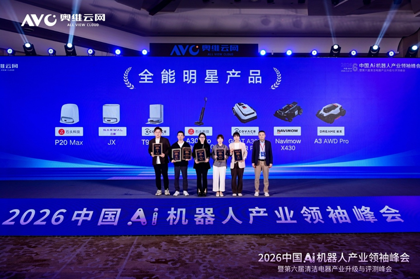 此次峰会还对在扫地机器人、洗地机、割草机器人三大品类测评中表现突出的优秀产品进行了表彰,颁发全能明星产品奖项,致敬行业创新标杆。