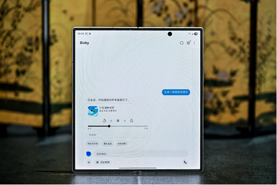借助多模态AI技术,Bixby也迎来升级,面对复杂语音指令也可做到使命必达,还能将多份文档凝练成内容摘要,甚至延展为思维导图,成为工作中的可靠智囊。在创意层面,Bixby可根据指令创作纯音乐,将灵感轻松转化为动人的旋律。语聊视界模式更将语音与视频交互融会贯通,赋予Bixby视觉洞察与信息联动的能力,使信息获取直观明晰,并为人机交互平添几分人性化的温度。