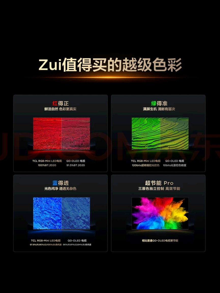 二是保持了极高的色域水平。KSF荧光粉技术成熟,能够激发出色纯度极高的红光。配合原本的蓝、绿芯片,TCL Q9M依然实现了100% BT.2020的超高色域覆盖,色域值达到行业顶尖水准。这意味着,改进方案并未以牺牲色彩表现力为代价,依然能呈现极其丰富、鲜艳、准确的色彩。